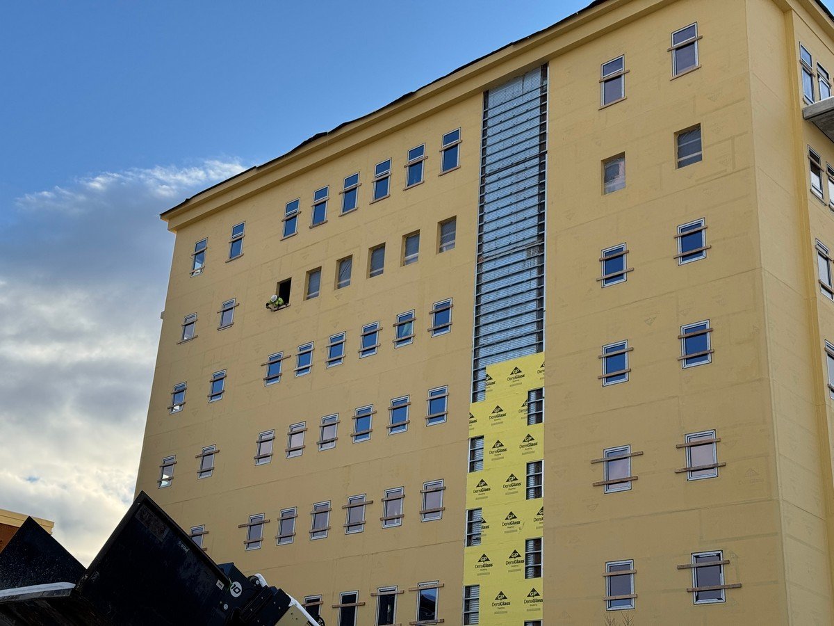 Project Budget: 25 Million – Conventional Steel & Concrete Podium with Wood Panel Construction On Top. Construction of 77 unit apartment complex with 1,700 sf of retail space on the first floor. This is a complete design + build project built on 2 lots with a combined lot area of 11,400 sf.