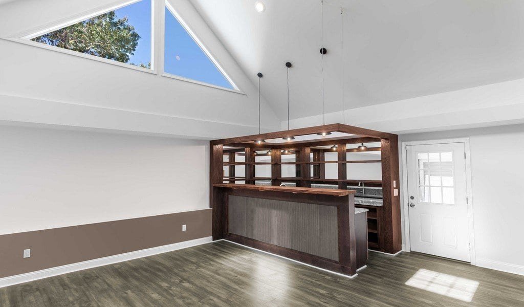 Home Remodel & Addition Project Highlights, Special Features & Upgrades: A recently completed major home renovation and remodel in Braintree MAThis project included a complete interior gut and design/build. Large room addition on the back of the home featuring an “adult playroom” with a concrete patio and deck above.Rainscape Roof Drainage SystemComposite DeckingCustom Bar Design & BuildSpeakeasy Liquor Storage RoomCustom ShelvingHigh-End Fixtures