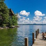 Breathtakingly beautiful and luxurious lakefront home, custom built in Wolfeboro,NH. With 430′ of lake frontage on Lake Winnipesaukee and views from every room, this contemporary styled home is sure to impress. The open and easy living floor plan is perfect for entertaining, with a soundproofed media room, 30’ granite fireplace and massive wall of windows, and gallery lighting in the hallways. The Lutron lighting system throughout the house features scene modes and automatic functions to make life easier. The property features stunning lake and mountain views from the multiple ironwood decks, outdoor hot tub, and swim platforms. The 2-slip custom boat house has an airplane hangar design overhead door system and an additional 45′ dock – perfect for all your water activities. The home also has a home gym, sauna and outdoor spa.