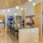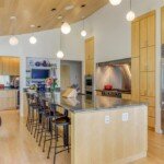 The chef’s kitchen has professional grade appliances and a massive granite island to seat six. Custom maple cabinets and woodwork with a large pantry, wine fridge and endless storage.