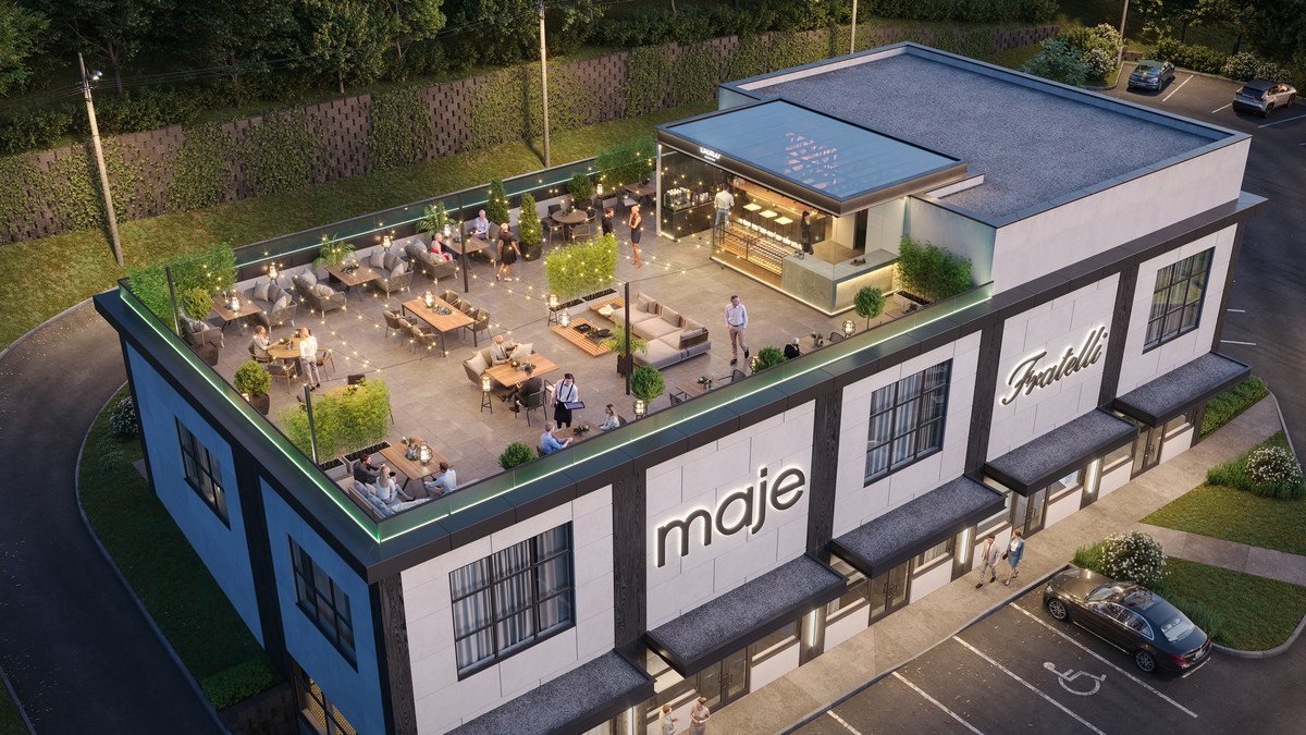 Retail Building Design Build in Salem NH Mixed Use Building Design + Build Second floor cigar loungeRooftop loungeRetail space on the first floor
